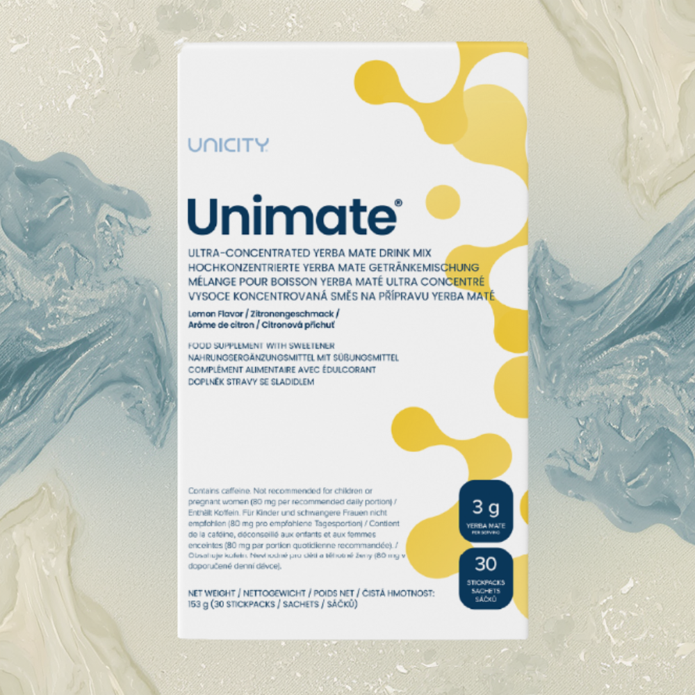 Unimate je vysoce koncentrovaný extrakt z yerba mate s bohatým obsahem theobrominu, chlorogenových kyselin a přírodních antioxidantů, které přináší: